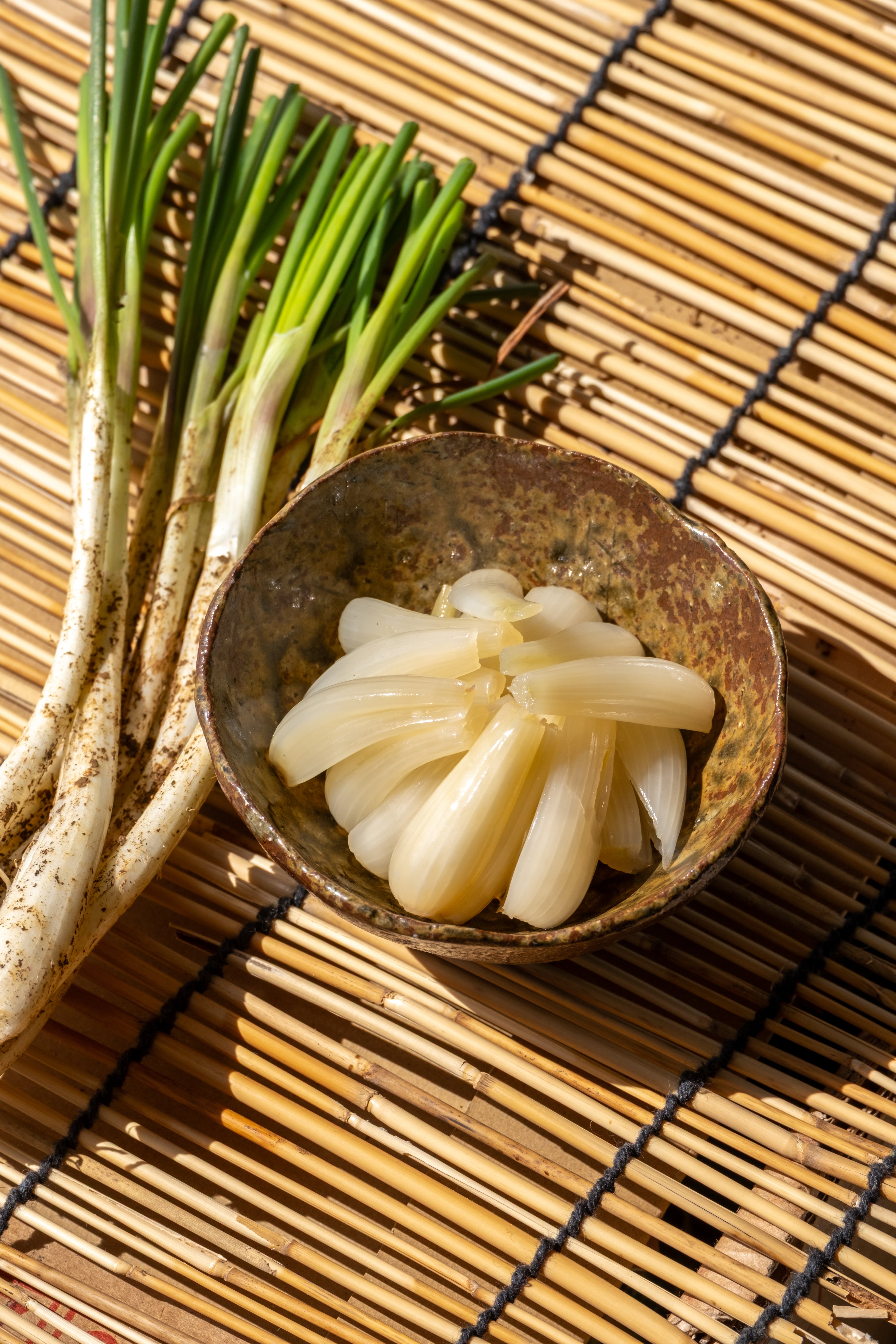 伊江島産の島らっきょうは一度塩漬けにし、塩抜き後